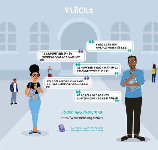 ቦርዱ የከፍተኛ ትምህርት ተቋማት ተማሪዎች የመራጮች ምዝገባ በኢንተርኔት እንደሚከናወን ማሳወቁ እንዲሁም ይህንን ተከትሎ ምዝገባ ሲከናወን እንደነበር ይታወቃል። በየምርጫ ጣቢያዎቹ የሚደረገው የመራጮች ምዝገባ ቢጠናቀቅም ለከፍተኛ ትምህርት ተቋማት ተማሪዎች ተጨማሪ የምዝገባ ጊዜ መሰጠት እንዳለበት ቦርዱ ወስኗል። በዚህ መሰረት የከፍተኛ ትምህርት ተቋማት ተማሪዎች እስከ ግንቦት 17 ቀን 2013 ዓ.ም ድረስ https://www.ovrs.gov.et በሚገኘው የመመዝገቢያ አድራሻን በመጠቀም መመዝገብ እንደሚቻል ከቦርዱ…