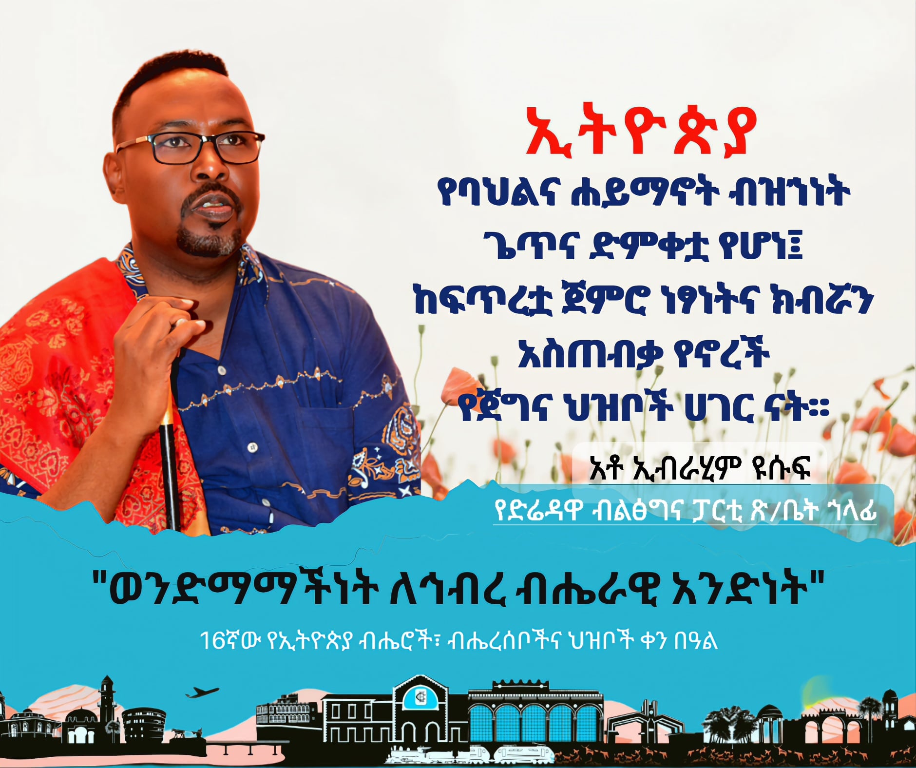 Xuska munaasibada qowmiyadaha iyo shucuubta itoobiya ayaa marki 16aad lagu xusi doonaa ismaamulkani diri dhabe sidaa awgeed waxaan dhamaan shacab waynaha ismaamulka ugu baaqayaa in ay xoojiyaan walaaltinimada iyo waliba sumacada fiican ee bulshada ismaamulka lagu garanaayo ee ah marti soorka iyo waliba soo dhawaynta wanaagsan in ay sii xoojiyaan.