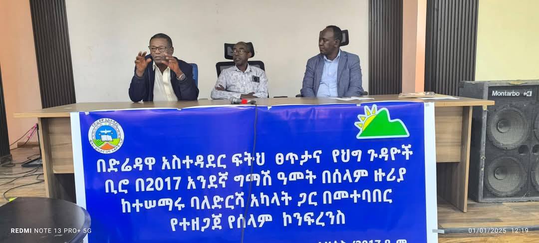 በፍትህ ፀጥታና ህግ ጉዳዮች ቢሮ አዘጋጆነት በተካሄደዉ በእዚሁ የሰላም ኮንፍረስ የእዉቅናና ምስጋና መርሀ ግብር የሀይማኖት አባቶች፣ የሀገር ሽማግሌዎችና የተለያዩ የአስተዳደሩና የወረዳ አመራሮች የሁሉም የአስተዳደሩ ቀበሌ የሰላም አደረጃጀት አመራሮች፣አጋዠ ተቋማትና ባለድርሻ አካላት ተገኝተዋል ስል የድሬዳዋ አስተዳደር በፍትህ ፀጥታና ህግ ጉዳዮች ቢሮ